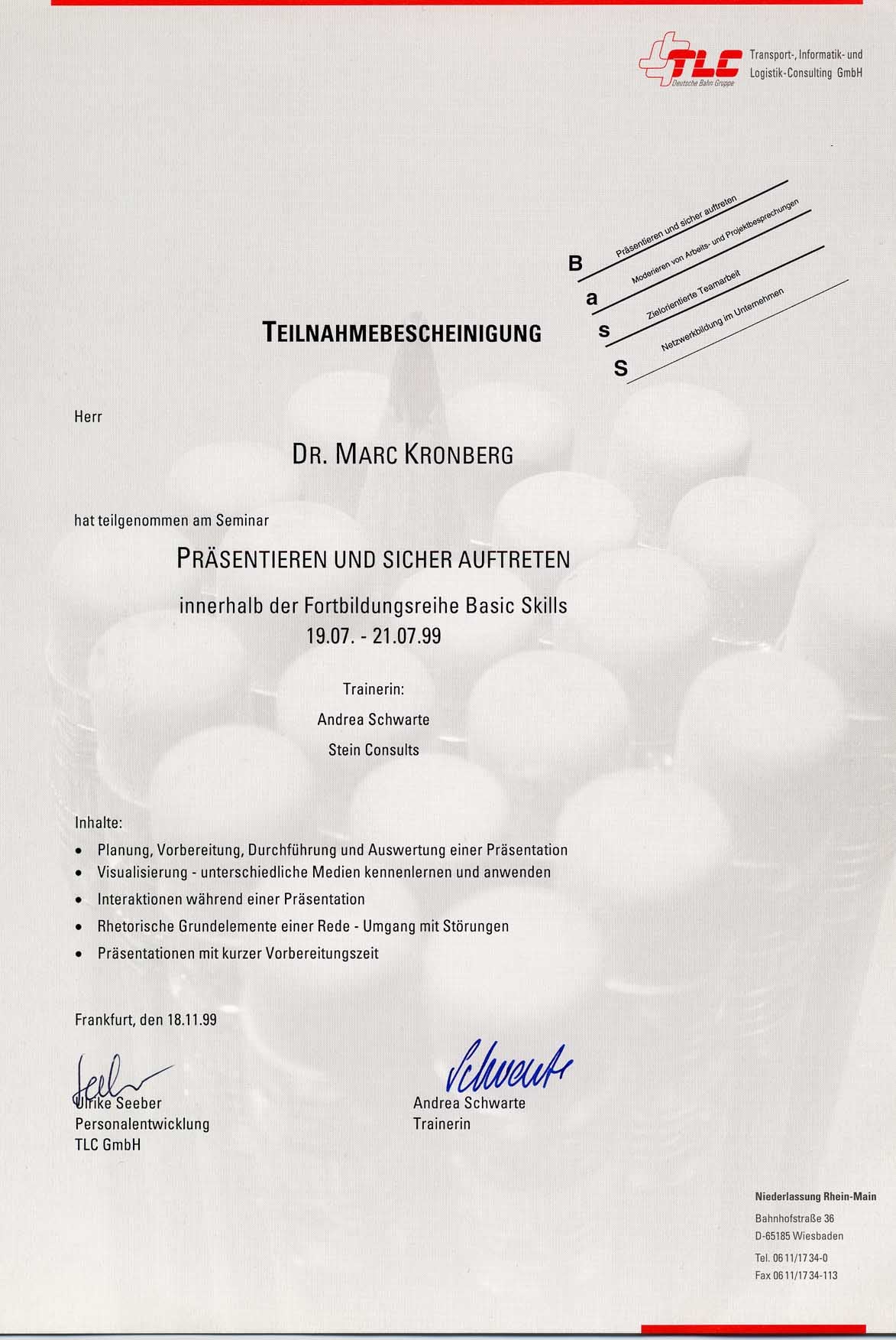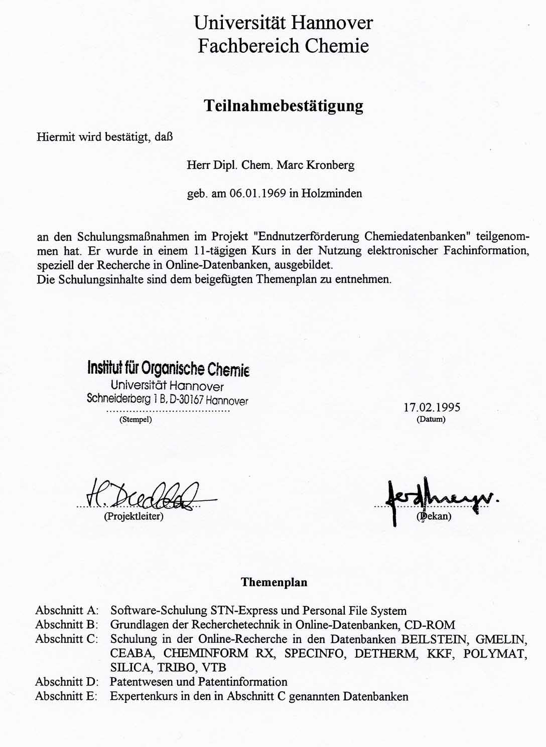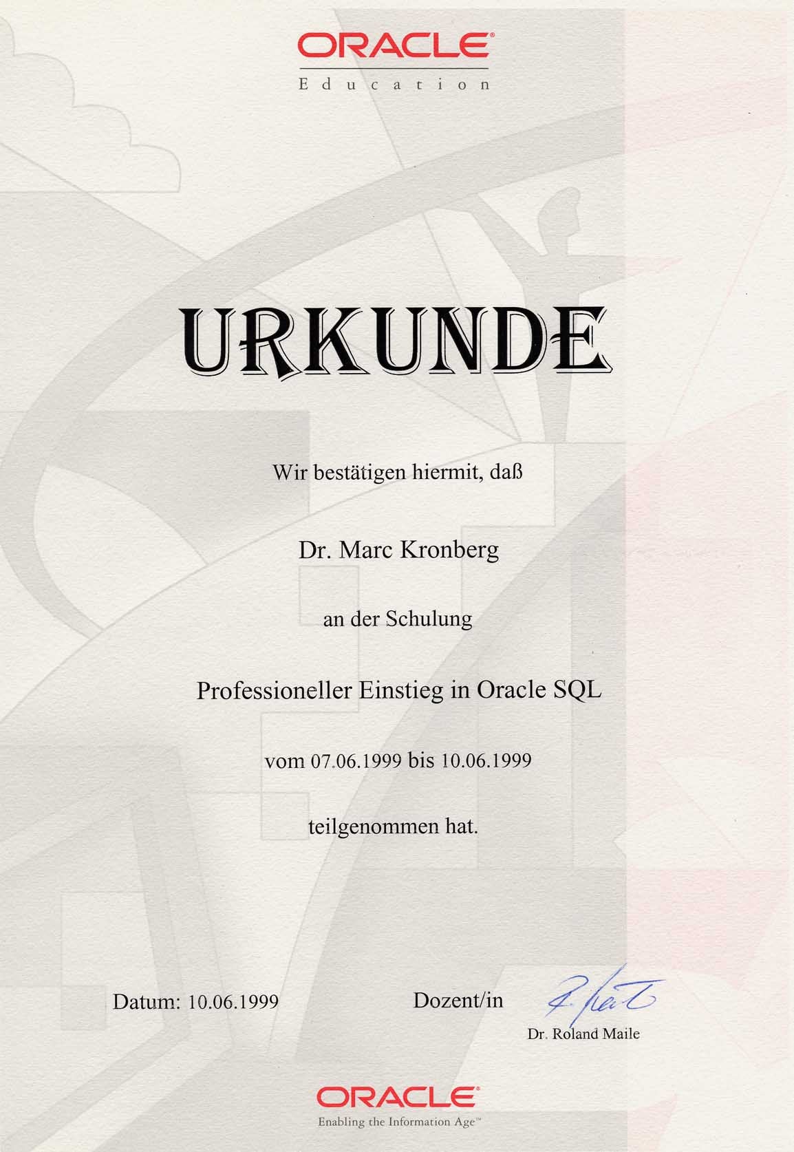 Die folgende Liste zählt nur die Schulungen auf, die mit einem Zertifikat belegt sind.