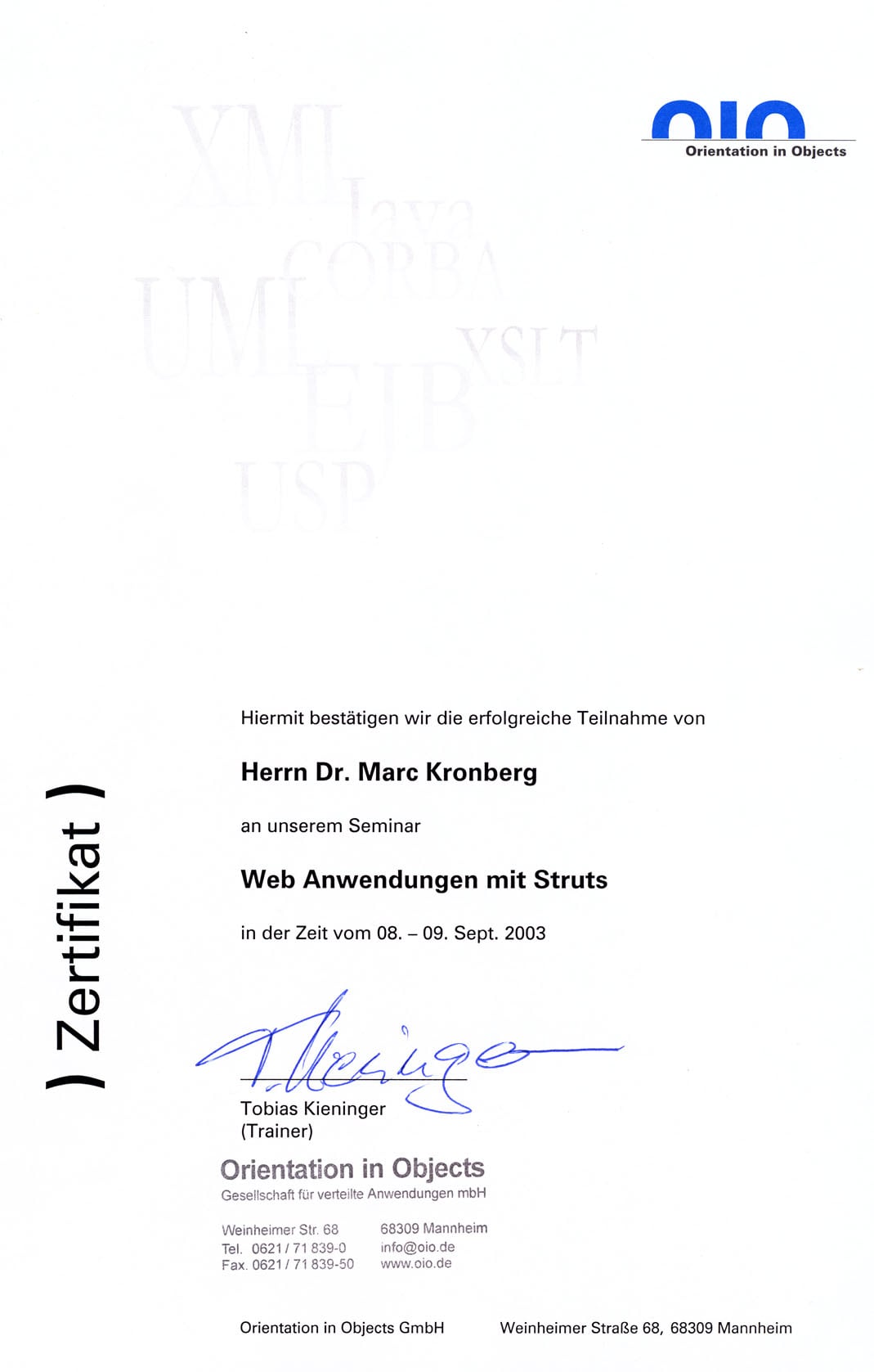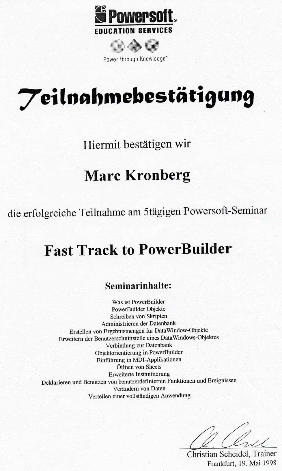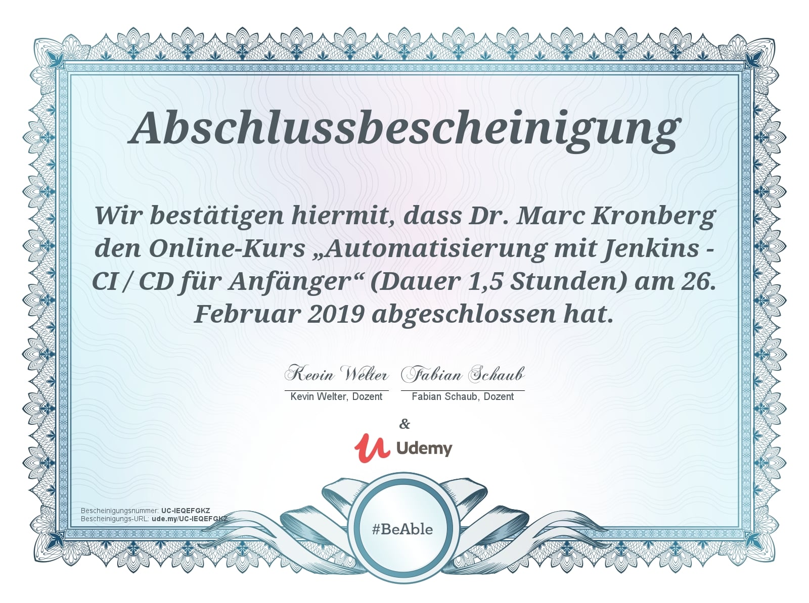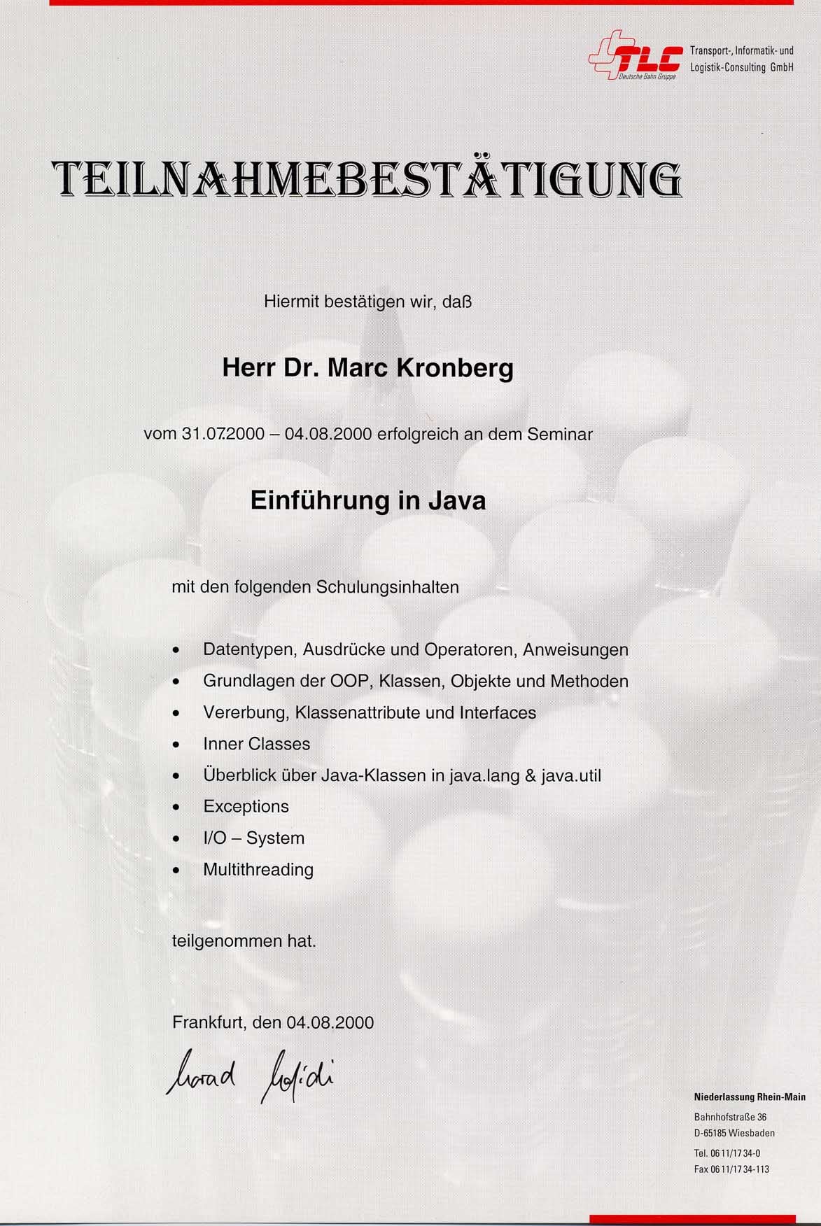 Die folgende Liste zählt nur die Schulungen auf, die mit einem Zertifikat belegt sind.